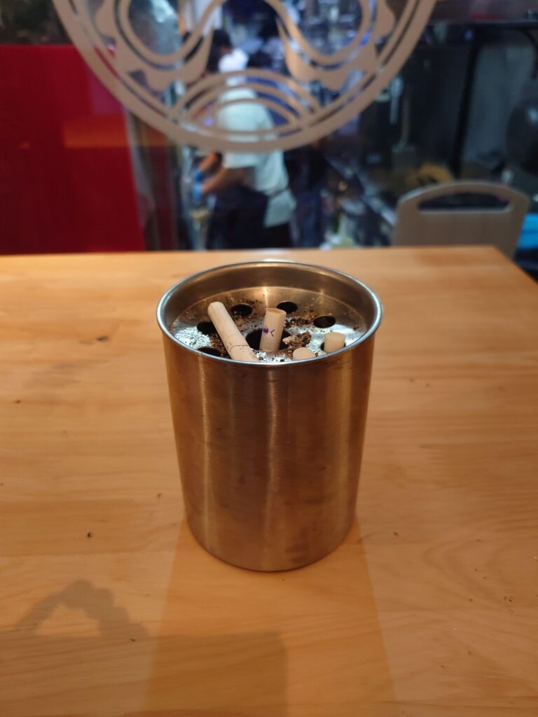 店内は駅チカで立ち寄りやすい雰囲気。さらにお店の外には灰皿もあるので、喫煙者にも嬉しいポイントです。