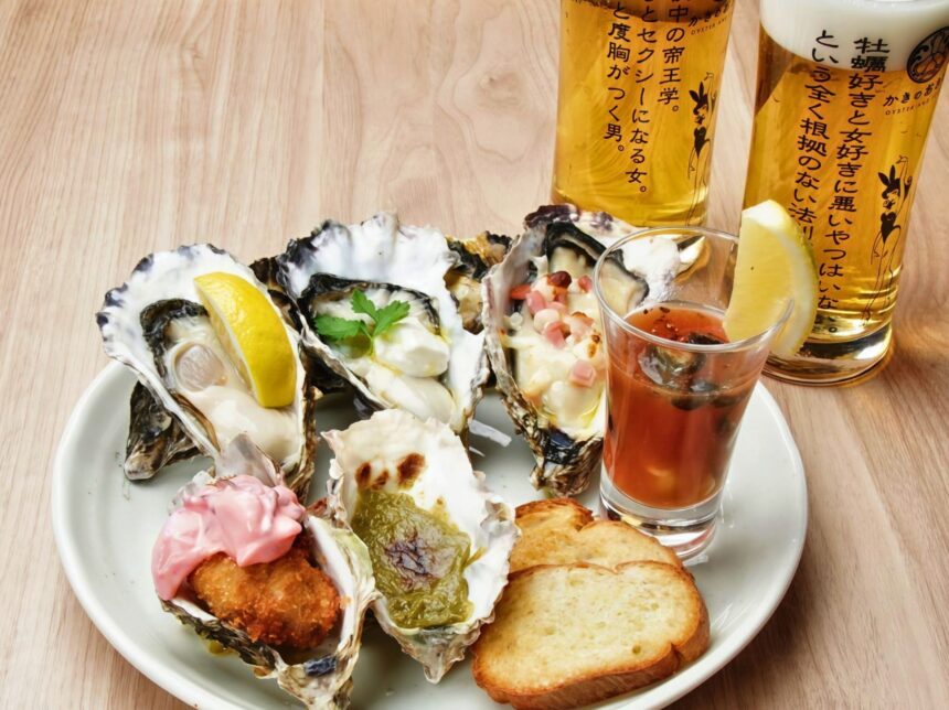 生牡蠣だけではなく、香ばしい焼き牡蠣や、アヒージョ風の「牡蠣ージョ」、カルボナーラ風の「牡蠣ボナーラ」など、牡蠣を主役にしたアレンジメニューが豊富。まさに“牡蠣尽くし”を堪能できるお店です。