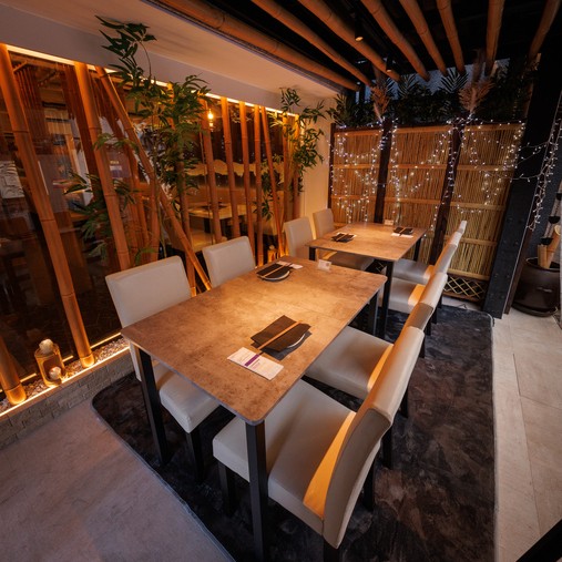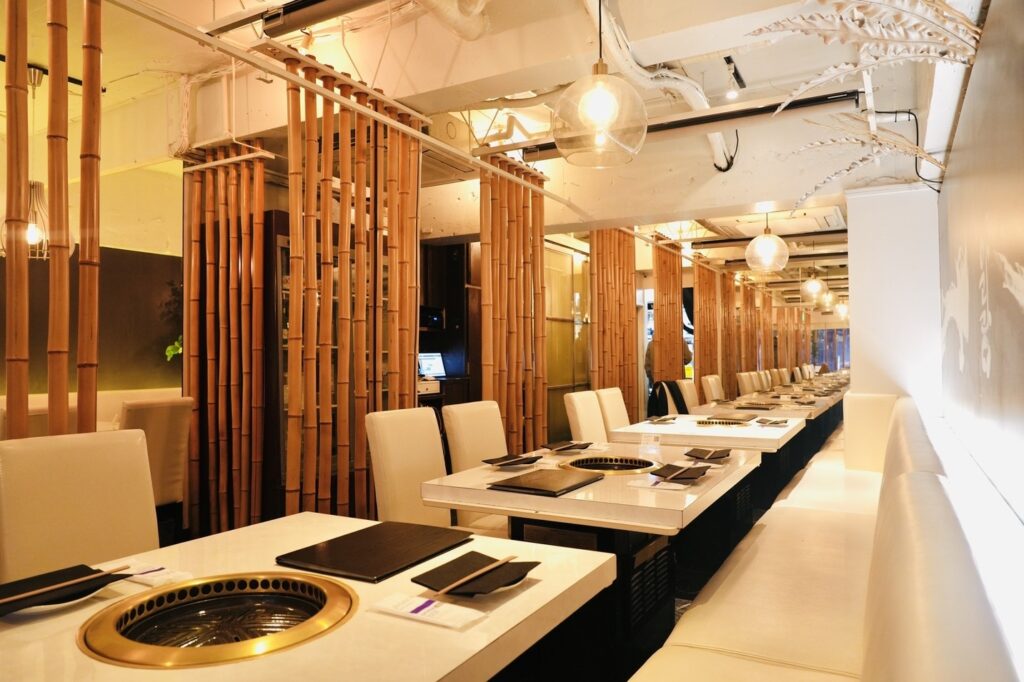 店内は竹をモチーフにした落ち着いたデザインで、20~44名までの大人数宴会もOK。無煙ロースター完備で匂いを気にせず楽しめます。